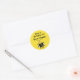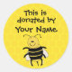 These customisable round vinyl stickers have an image of a cartoon honey bee on a honeycomb background.