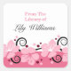 A modern floral design with a row of pink flowers with black swirls and dots is an attractive way to add colour to your bookplate..