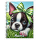 Personalised Boston Terrier Puppy with Green Bow Notebook