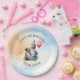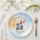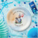 A sweet customisable 1st birthday party paper plates for a boy's birthday party. This has a sweet theme of a little baby boy holding a balloon sitting next to his puppy dog. It is done with a whimsical watercolor style by ai. So, if your little boy's best friend is his puppy dog, this theme will be perfect for you.