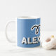 Personalised boys mug with customisable kids name. Cute gift idea for childrens Birthday. Personalizable mug with little star. Custom blue background colour. Custom cups.