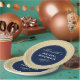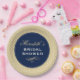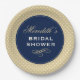 Elegant wedding bridal shower dessert plates feature the bride's name and "Bridal Shower" event title with a scroll detail and butterfly patterned border design. Midnight / navy blue with soft white / light ivory and champagne gold.