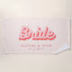 Retro Bride Beach Towel. Celebrate the happy couple with this stylish and personalised towel, featuring the word "Bride" in a bold and playful pink and red retro font. Perfect for the bride-to-be, this towel is a unique and practical gift she'll enjoy using before and after the big day. Personalise the towel with the couple's names and wedding date, making it a special keepsake she'll treasure for years to come. Whether she's at the beach, by the pool, or just drying off after a shower, this "Bride" towel is a functional and meaningful way to celebrate her upcoming wedding. Make her special day even more memorable with this personalised and chic gift!