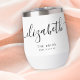 Personalised Bride Elegant Script Calligraphy Name Thermal Wine Tumbler. Easy to customise elegant script typography monogram. Perfect wedding party or bridal party accessory gift idea!