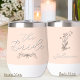 This Bridal wine tumbler can be personalised with the easy to use template! This tumbler has a beautiful silver script font for "The Bride" that has been custom enhanced to really make it stand out! The tastefully painted watercolor wildflower sprig on the back, elevates that Rustic feel with a touch of Elegance! This is double-insulated and there are 4 other choices if you want a taller travel cup or other styles. It was designed to coordinate perfectly with my Rustic Elegant Wildflowers Wedding Suite Collection with options for her Bridesmaids / Maid Of Honour as well! This is unique and stylish and will be her "go-to" Wedding Cup to take with her when she goes shopping for her wedding dress, goes out with her girls, or getting together for any reason! *Don't forget to check out the rest of This Collection to get the ladies of the wedding party their version (perfect for the bridesmaid's gifts! ) to Celebrate in style together!! Great Mother of the Bride / Groom gift too!