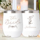 This Bridal wine tumbler can be personalised with the easy to use template! This tumbler has a beautiful soft peach script font for "The Bride" that has been custom enhanced to really make it stand out! The tastefully painted watercolor wildflower sprig on the back, elevates that Rustic feel with a touch of Elegance! This is double-insulated and there are 4 other choices if you want a taller travel cup or other styles. It was designed to coordinate perfectly with my Rustic Elegant Wildflowers Wedding Suite Collection with options for her Bridesmaids / Maid Of Honour as well! This is unique and stylish and will be her "go-to" Wedding Cup to take with her when she goes shopping for her wedding dress, goes out with her girls, or getting together for any reason! *Don't forget to check out the rest of This Collection to get the ladies of the wedding party their version (perfect for the bridesmaid's gifts! ) to Celebrate in style together!! Great Mother of the Bride / Groom gift too!