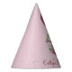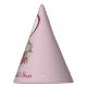Party hat features an original marker illustration of a pink rose floral ball bouquet. Great for any bachelorette party, bridal shower, engagement party, or other wedding event! Simply personalise with the name of the bride.