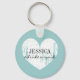 Personalised bridesmaid keychain | Turquoise / teal blue and white weathered heart. Elegant stylish typography design. Make one for bride, bridesmaids, maid of honour, flower girl, mother of the bride etc. Customisable background colour to match your wedding party or bridal shower.