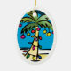 Brightly coloured palm tree with christmas lights, blue ocean background, and blue and white colour scheme.  Share the Holidays with these personalised ornaments, sure to be a great conversation starter. Great christmas gift for anyone!