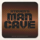 Add a touch of class to your man cave with these custom paper coasters. The background design depicts a diamond plate pattern in bronze/copper that is darker at the top and bottom with a gradient to lighter in the middle. It reads "(your name)'s Man Cave" in a cool industrial style font with screw head marks in black. Customise it for personalised man cave coasters.