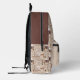 This fun printed backpack features a collage pattern of coffee cups and terms in brown and white on a beige background. Add your name to personalise. Perfect for the coffee lover.