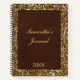 Personalise the front of this brown notebook/journal with your name and the year. The design has gold flourish and ornate swirls around the edges and on the back.