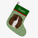 A cute cartoon of a tricolor guinea pig on a stocking with room to personalise for your pet. They deserve a gift from Santa too! Original design by Night Owl's Menagerie, 2017.