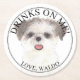 Personalised Brown & White Shih Tzu Dog Wedding Round Paper Coaster