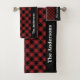 Personalised Buffalo Plaid Merry Christmas Bath Towel Set in black and red with personalisation.