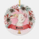 Add a touch of whimsy and charm to your holiday décor with this adorable personalised Christmas ornament featuring a sweet bunny surrounded by a festive wreath of pinecones, berries, and evergreen branches. The soft pink background and gentle design make it a lovely keepsake for children or those who adore cute animal themes. Customise with a name for a truly special ornament that will be treasured for years to come