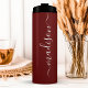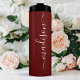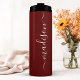 Celebrate the bride's special day with this elegant and personalised bridesmaid tumbler. The rich burgundy hue exudes sophistication, while the customisable script name adds a personal touch. This stainless steel tumbler is perfect for keeping drinks hot or cold throughout the wedding festivities and makes a thoughtful and practical gift for the bridal party.