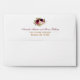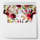 Sending out a beautiful wedding invitation ensemble is easily achieved with these personalised envelopes with an inner pattern of burgundy, pink, wine, red, and cream watercolors flowers with green leaves and multi-coloured stems. The back flap has another floral bouquet and personalisation of names and addresses in burgundy and gold in two different fonts.