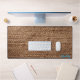 Bring the intricate beauty of this burlap cover into your workspace with this exquisite desk mat. Personalise it with a name printed on the lower right corner. This mat features a view of a crowded workbench of a busy inventor with a high-quality print from a high definition graphic. It provides a smooth and comfortable surface for your work for your laptop, keyboard and mouse. It will also transform your workbench with a stylish and elegant touch. Perfectly suited for all creators, artists, writers and anyone inspired.