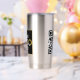 A "your logo here" design placeholder which can be replaced with your personalised custom business logo. A great design perfect for business promotional gifts, employee gifts and marketing and branding. Simply upload your custom logo, QR Code and create your own custom business logo insulated tumbler.