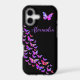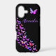 Personalised Purple pink and black Butterfly iPhone 17 Case Psychedelic Colourful Butterfly Art by Catherine Sweetman
