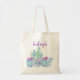 Personalised cactus / succulent tote bag in pretty purples, greens, and blues.