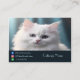 Make a memorable impression with our personalised calling cards for your cattery. The front showcases a captivating image of a cat, embodying the essence of your feline haven, alongside your cattery's name. On the back, find essential contact details such as the owner's name, phone number, and address, complemented by convenient social media links to stay connected. Elevate your professional image and leave a lasting mark with these customised calling cards tailored for your cattery.