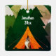 This Camping holiday Christmas tree ornament features an orange tent and owl with a full moon and mountains in the background. The front has the text "Gone Camping". This text can be personalised to read as you wish or removed. The back can be personalised with a name, year or any text that you wish to add.