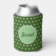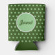 Hunter green background with sage green polka dots... sage green centre circle with hunter green lettering... soft grey accents...