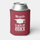 Graduate party bottle and can coolers with graduation hat / cap. Custom class of 2024 etc. Personalised text and background colours. Create your own party favour. Cosy gift idea for high school graduate students, college, nursing school, university etc. Script typography for name or monogram. Keeps drinks cool. Beverage holder with double sided print. Customisable background colour. Also nice for school reunion parties.