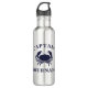 Captain with your name and crab illustration stainless steel water bottle. Navy blue text.