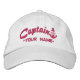 A dynamic personalised Captain cap in fuchsia pink style embroidered hat sure to make an impression on, or off the boat. Make this star anchor design embroidery as unique as you are with your name, your location, or your boat's name.