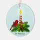 Cardinal and candle with pine leaves personalised Ornament. Ideal for everyone! Text only on the front side! This makes a great souvenir for everyone.
