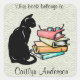 Personalised Cat and Books Bookplate Sticker with customisable text.