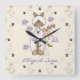 Personalised Cat, Flowers and Paw Print Wall Clock