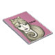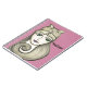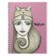 Cute notebook with an illustration of a girl with a cat hugging her head. Personalise with your name and choose any colour of background you want. Shown here on pink.