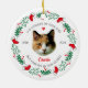 This "Cat´s Memorial Christmas" ornament features a christmas wreath with custom pet photo, name and years of adoption and death.