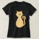 Original personalised cat message on black Women T Shirt. The design is a orange cat silhouette. Both texts, on the front and back side can be customised.