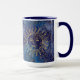 Pour a good brew and enjoy this celestial mug with your name or as a gift to someone. This beautiful mug holds 15 ounces, features blue and gold botanical space background, golden leaves pattern, sun and moon on both sides, custom name or initials vertically in the centre of the mug, and a blue interior with matching handle... for an enchanting way to start and end the day!