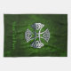 A bold chrome silver Celtic cross on a gorgeous green background. Personalise the text with any name or message you like.