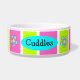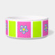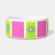 Doesn't your sweet female doggie deserve a personalised dog bowl? This colourful girly retro flower dog bowl is made of ceramic and is personalised just for your sweet girl dog. Featuring hot pink and lime green stripes in the background with colourful hot pink, turquoise and white flowers on top of the stripes this dog bowl is oh so cute. To make the design even better, the dog bowl can be customised with the name of your girl dog to make the perfect custom dog bowl. Makes a great gift for women or for teens who love their dogs. Copyright Kathy Henis