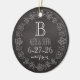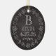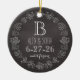 Celebrate the wedding day or anniversary of your favourite bride and groom with this custom ornament! An elegant white scroll chalk border on a black chalkboard background surrounds a monogram, couple's names and wedding date. “until forever” is written in script below the wedding date. Makes a beautiful, modern, personalised gift.
