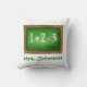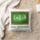 Decorative throw pillow features an original marker illustration of a green slate chalkboard with a simple math equation. Simply personalise with the name of your favourite math teacher for a unique teacher appreciation gift!