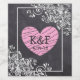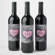 Black chalkboard and pink heart with fancy white tribal borders, initials and wedding date wine bottle label.