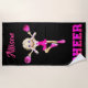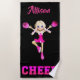 Show off your love for cheerleading with our personalised beach towel. Featuring a pink and black design, this towel is perfect for any cheerleader. Customise it with your name to make it uniquely yours. Perfect for trips to the beach or pool, or as a gift for the cheerleader in your life!