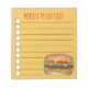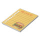 List-style note pad design features an original marker illustration of a delicious cheeseburger. Just personalise with your information.