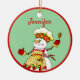 Cute Personalised Chef Snowman Christmas Ornament. Great gift for your favourite cook or chef. Add her name to this cute snowman with a chef's hat, a colourful apron, and a cooking spoon. A Candy cane in her pocket adds charm to this Christmas ornament.