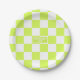Personalised Chequered Neon Lime Green Highlighter Paper Plate