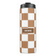 Personalised Chequered Neutral Cognac Camel Thermal Tumbler