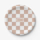 Personalised Chequered Neutral Rose Blush Pink Paper Plate